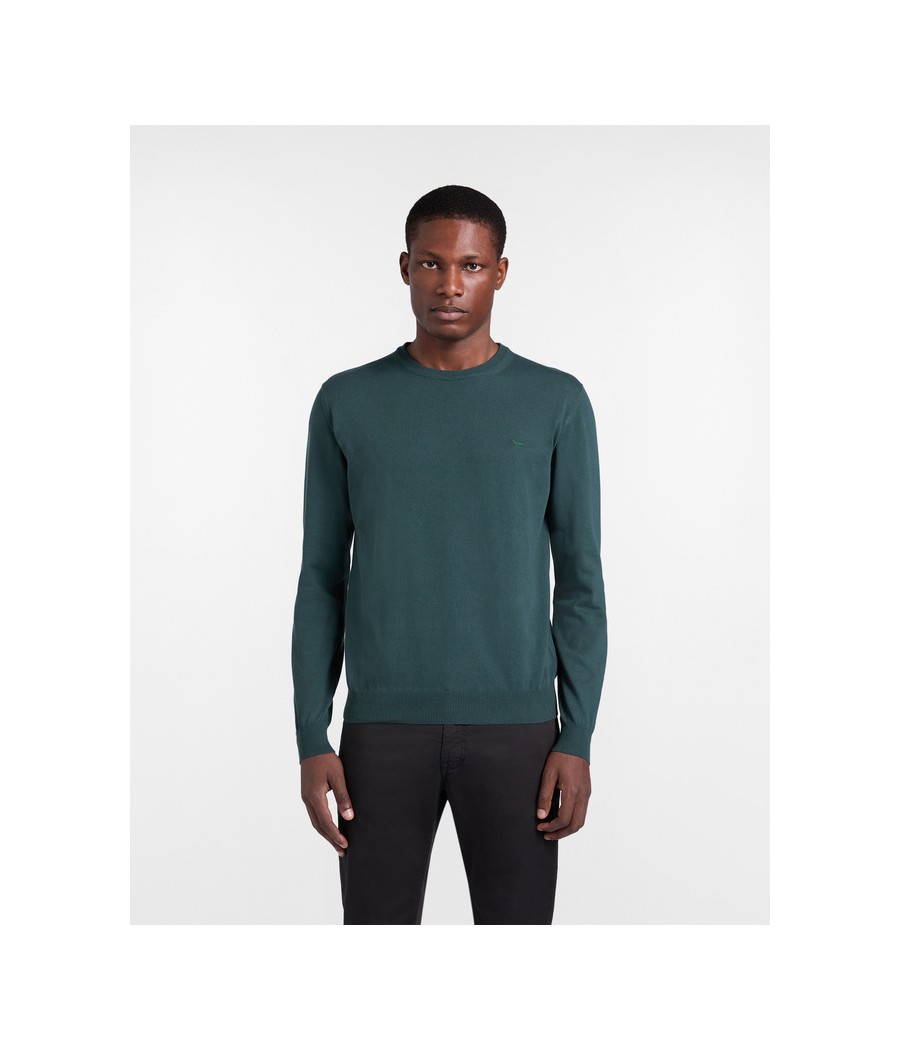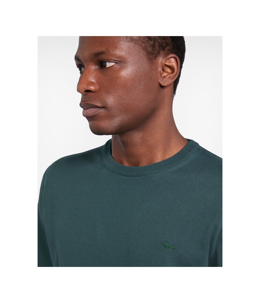 Maglione in puro cotone con girocollo e orli e polsini a coste. Questo modello ha una vestibilità regular per un look casual.con Bassotto ricamato a contrasto sul lato cuore. cotone 100%