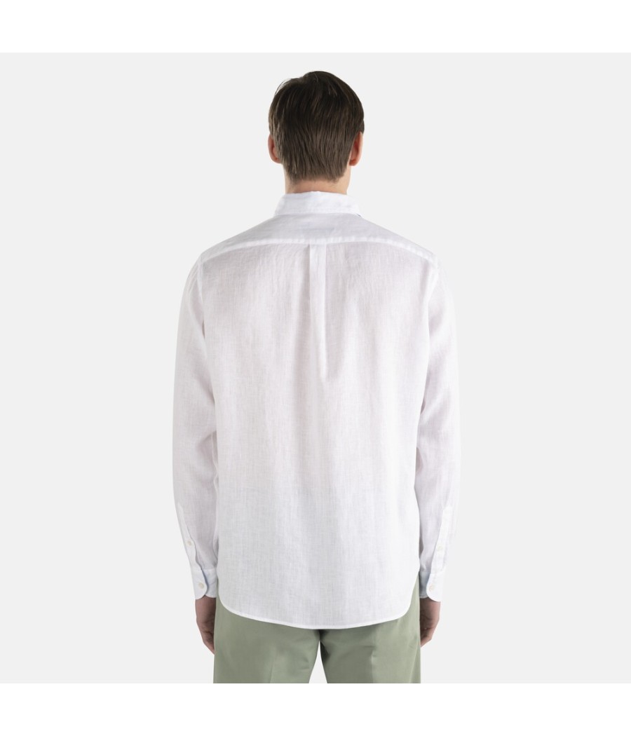 Elegante e raffinata, questa camicia da uomo in 100% lino presenta un colletto button-down ed è impreziosita da tessuto a contrasto all'interno dei polsi e del sotto collo. Perfetta per ogni occasione, viene proposta da Harmont & Blaine con una morbida vestibilità regular.Camicia Realizzata in puro lino. Collo button down e Bassotto ricamato a contrasto sul lato cuore. Regular fit Composizone: 100% Lino