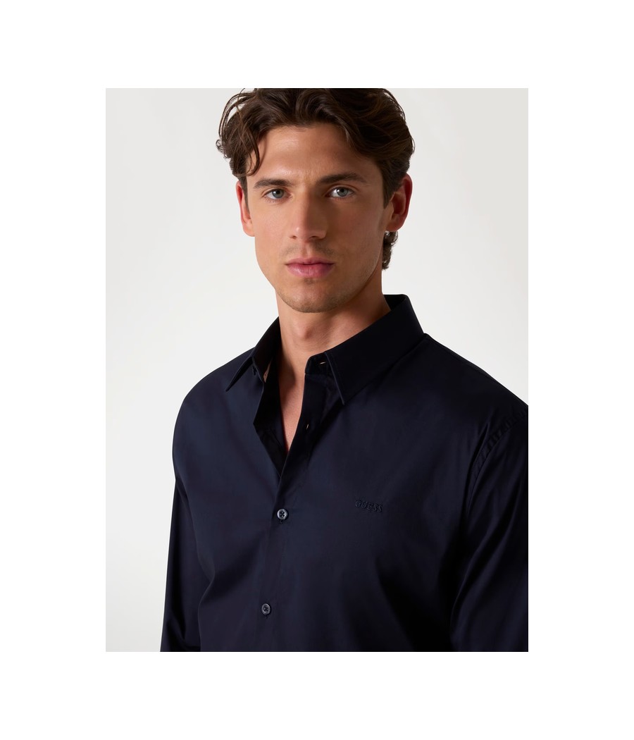 Questo capo contiene fibre di cotone organico. Camicia in poplin. Maniche lunghe. Colletto alla camicia. Vestibilità slim. Chiusura con bottoni. Ricamo del logo.
