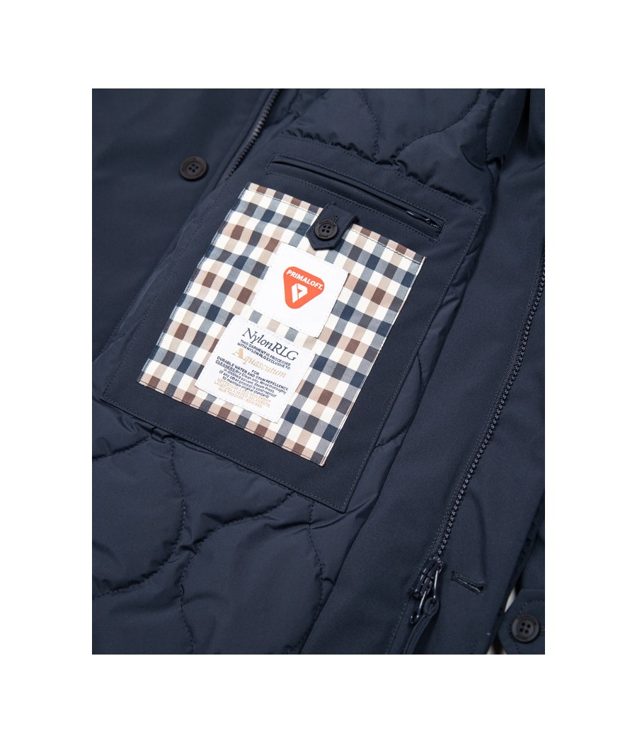 Tessuto esterno: 90% Poliestere, 10% Spandex (Soft Shell) Imbottitura interna in Primaloft® con trapuntatura a cipolla Spallone interno in tessuto Club Check Contrasto sotto al bavero in tessuto Club Check coordinato Zip YKK a doppio cursore Chiusura frontale con bottoni a pressione nascosti Due tasche frontali con costruzione d’archivio Tasca utility interna Waterproof Regular Fit Il modello è alto 184 cm e indossa la taglia L.