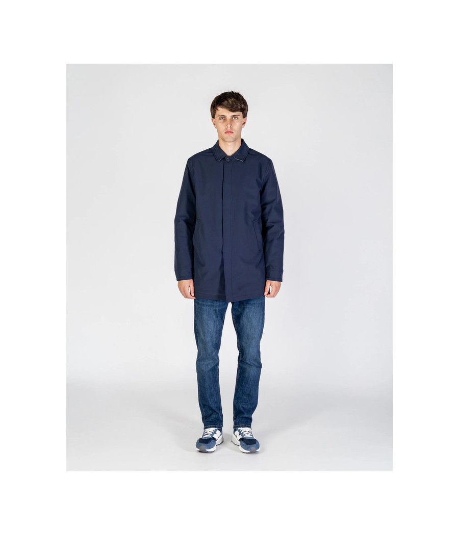 Un’interpretazione contemporanea del nostro trench iconico, rivisitato in Soft Shell per offrire comfort e performance tecnica. Il tessuto — una costruzione doppio strato in poliestere e spandex — garantisce protezione e struttura, mantenendo un’estetica pulita e moderna. L’interno è imbottito in Primaloft® con trapuntatura a cipolla e presenta uno spallone in tessuto Club Check, richiamato anche nel contrasto sotto al bavero del collo. La silhouette mantiene l’eleganza essenziale del trench originale, reinterpretata con un’attitudine più fluida e versatile.
