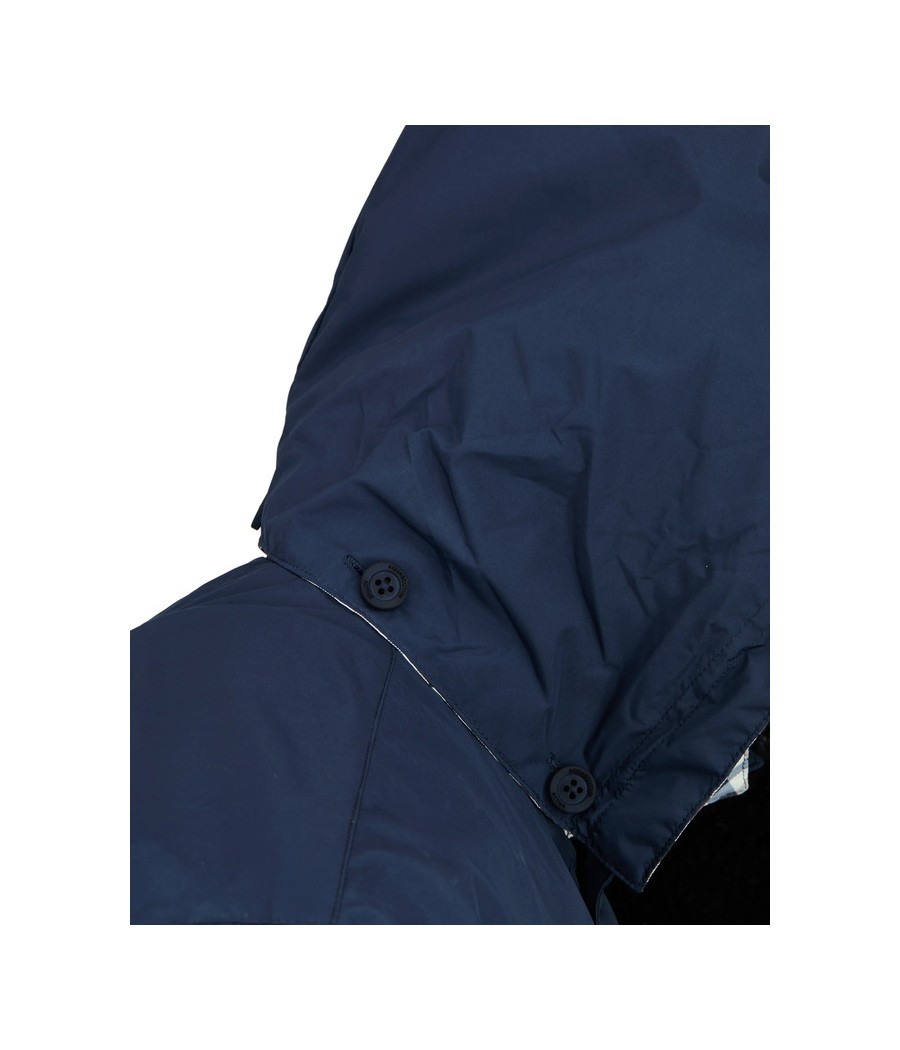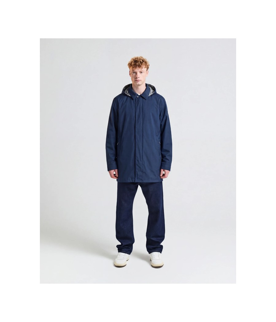100% Poliestere Cappuccio staccabile e reversibile (lato Club Check o tinta unita) Colletto classico Chiusura con zip e bottoni a pressione nascosti Tasche frontali a filetto Lunghezza media Packable Water-repellent Regular Fit