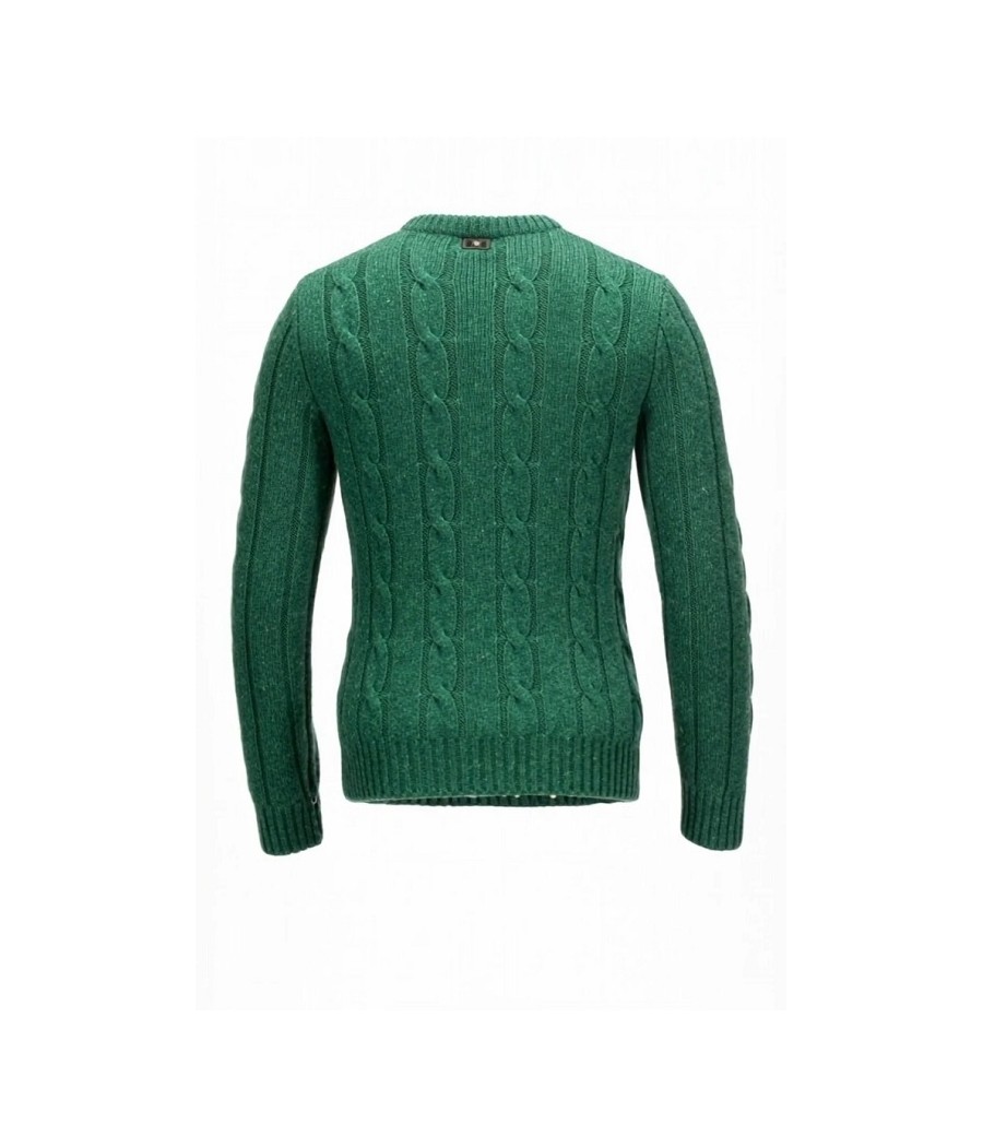 Maglione girocollo in pura lana Shetland operata, impreziosito da una particolare lavorazione Aran sul davanti. La lana Shetland, naturalmente calda e resistente, offre un perfetto equilibrio tra comfort e leggerezza, garantendo al capo un’elevata durata nel tempo e un tocco autentico. La texture leggermente materica esalta il carattere heritage-contemporaneo del design. Fondo, collo e polsini a coste valorizzano la vestibilità e ne sottolineano il design essenziale.