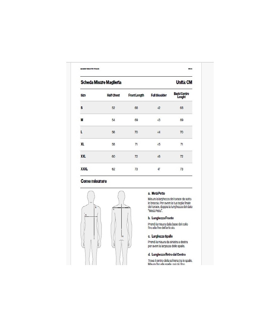 Guida alle Taglie