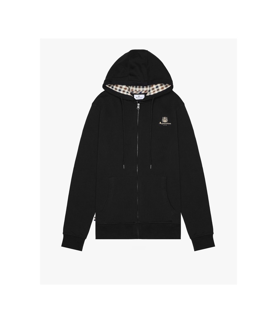 100% Cotone Cappuccio foderato in popeline Club Check Logo Aquascutum Active con Crest sul petto Zip YKK a doppio cursore Polsi e fondo in costina 1:1 tono su tono Non garzata, 320g/m² Regular Fit Il modello è alto 184 cm e indossa la taglia L.