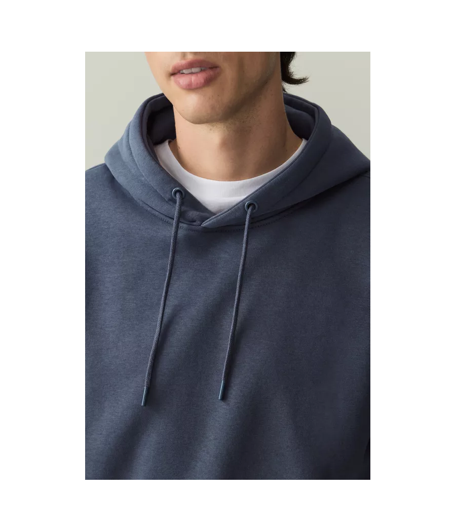 Felpa basica con cappuccio regolabile con coulisse e tasca frontale a marsupio. Presenta morbida felpatura interna. Sia i polsini che il bordo inferiore del capo sono rifiniti in costina elastica. Ha un taglio rilassato ed è realizzata in un tessuto misto cotone.