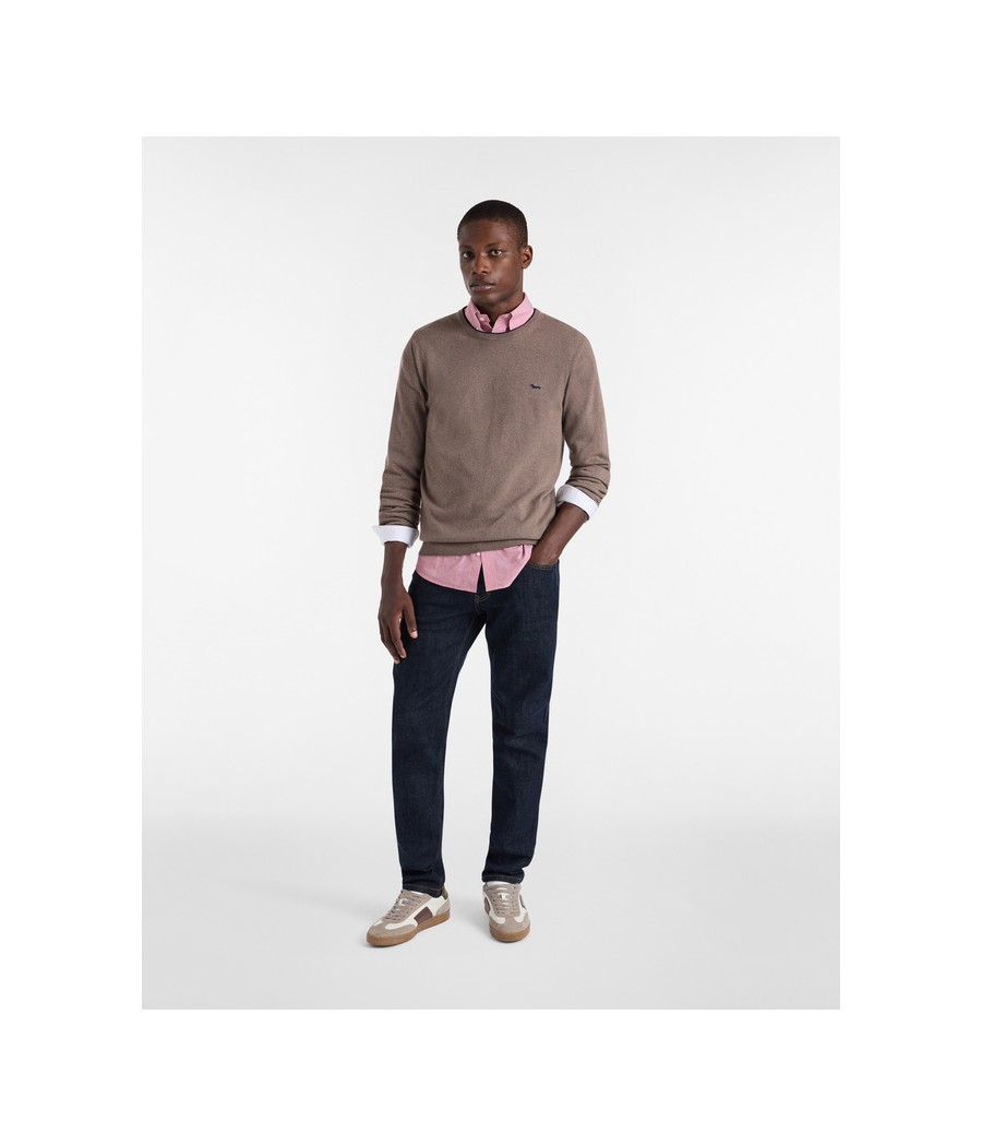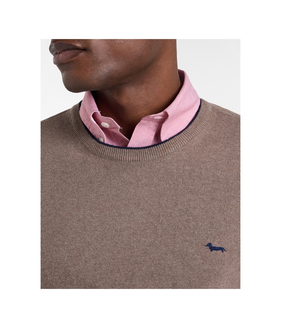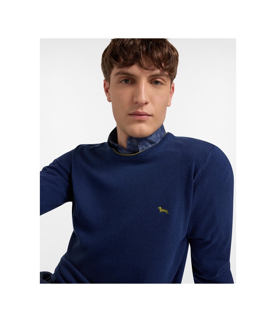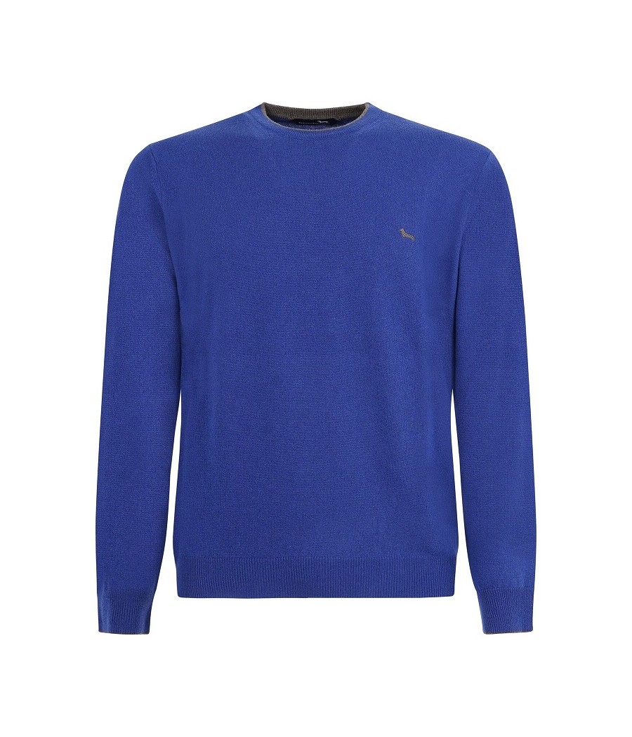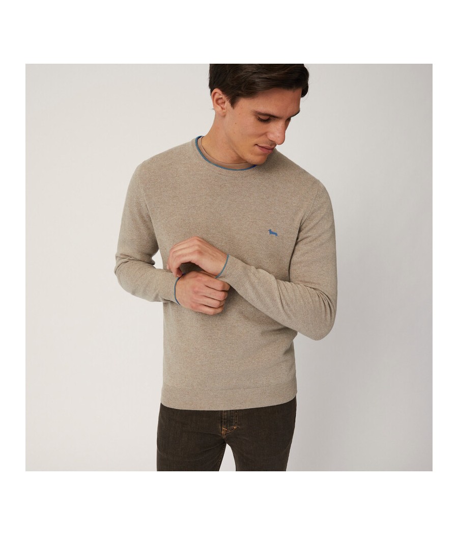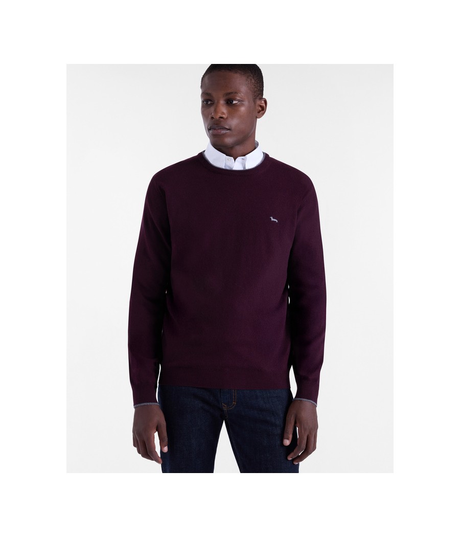 Pullover basic realizzato in misto cashmere tinta unita con sottile riga a contrasto lungo il girocollo. Bassotto ricamato sul lato cuore.
