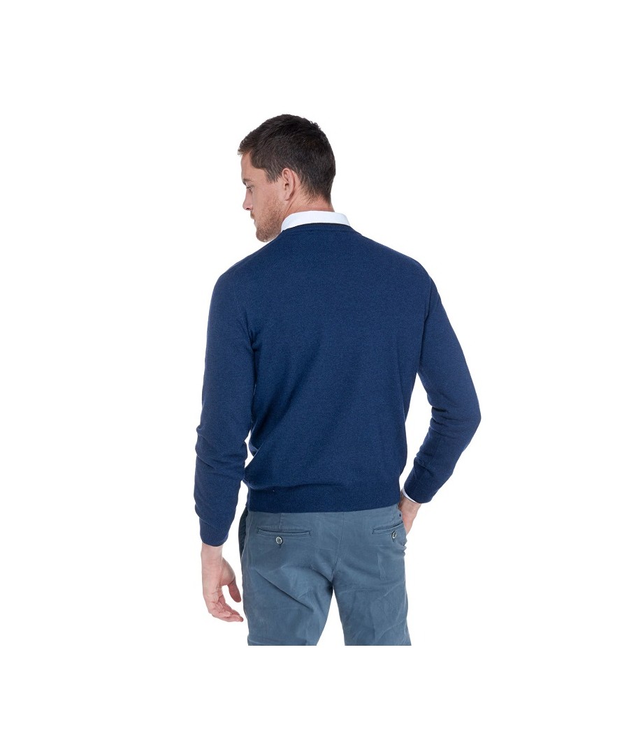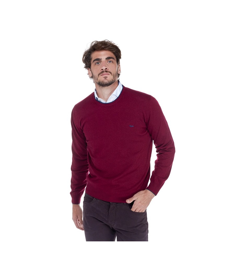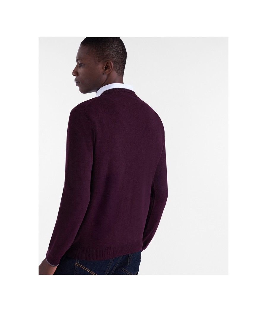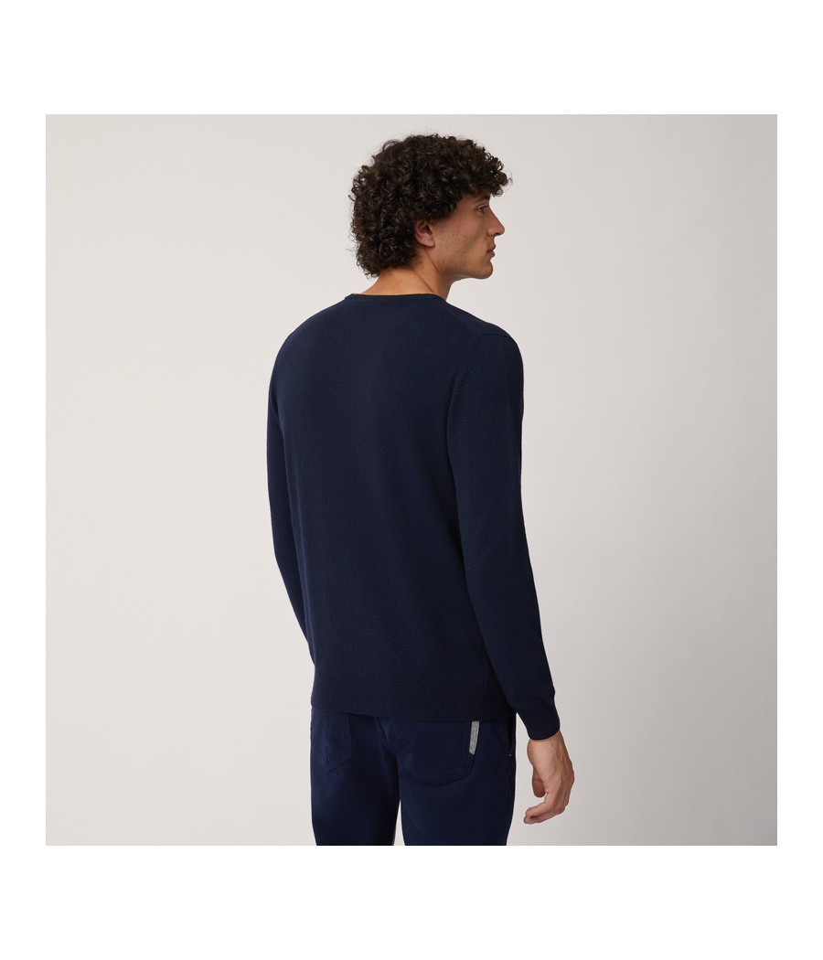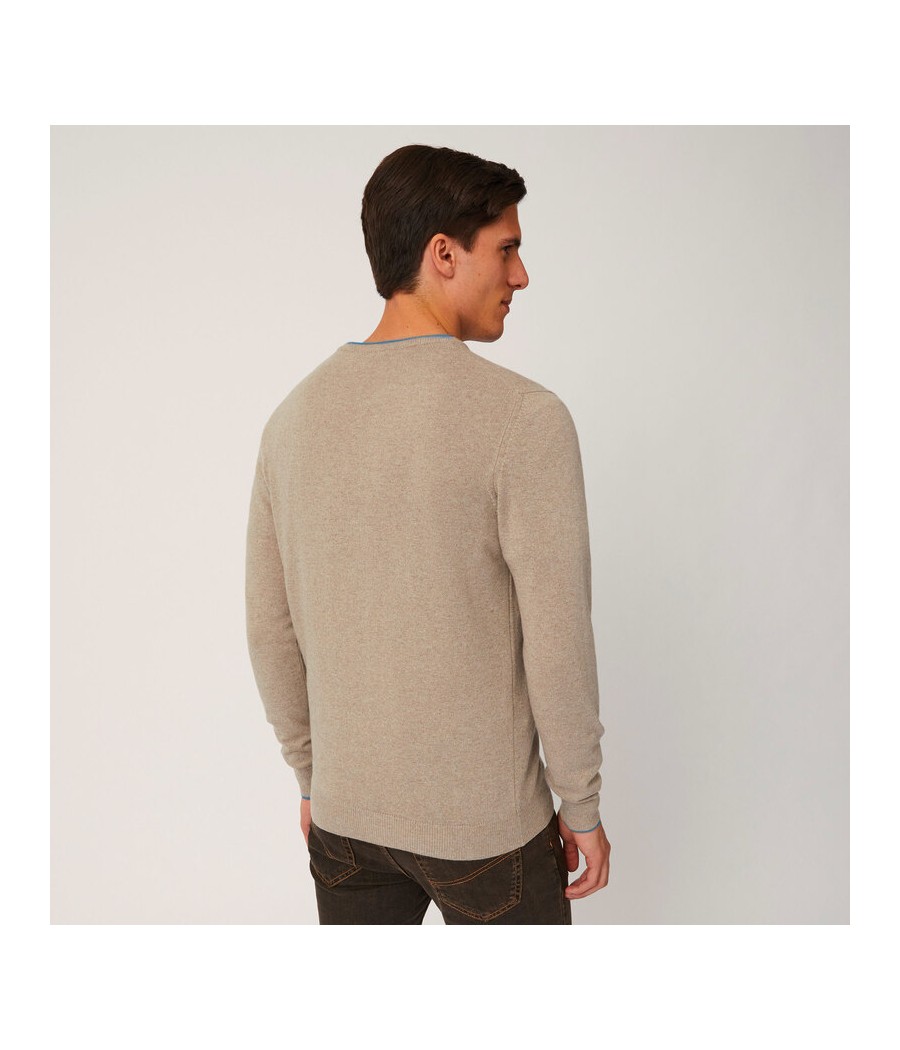 Pullover basic realizzato in misto cashmere tinta unita con sottile riga a contrasto lungo il girocollo. Bassotto ricamato sul lato cuore.