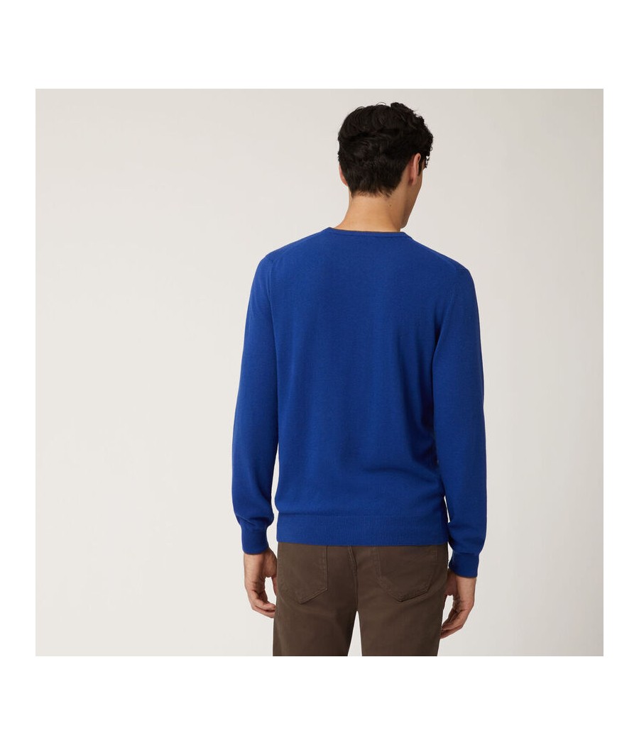 Pullover basic realizzato in misto cashmere tinta unita con sottile riga a contrasto lungo il girocollo. Bassotto ricamato sul lato cuore. COMPOSIZIONE 40% Lana 30% Viscosa 20% Nylon 10% Cachemere INDICAZIONI DI LAVAGGIO Lavare a mano