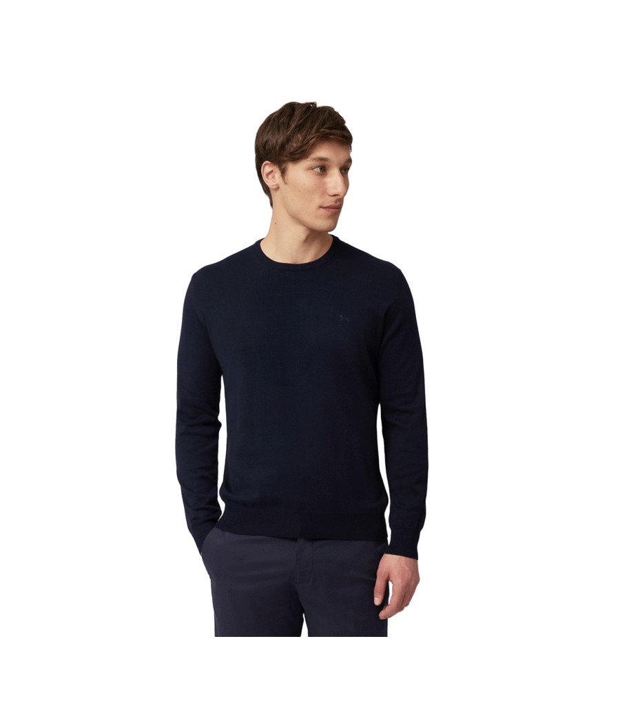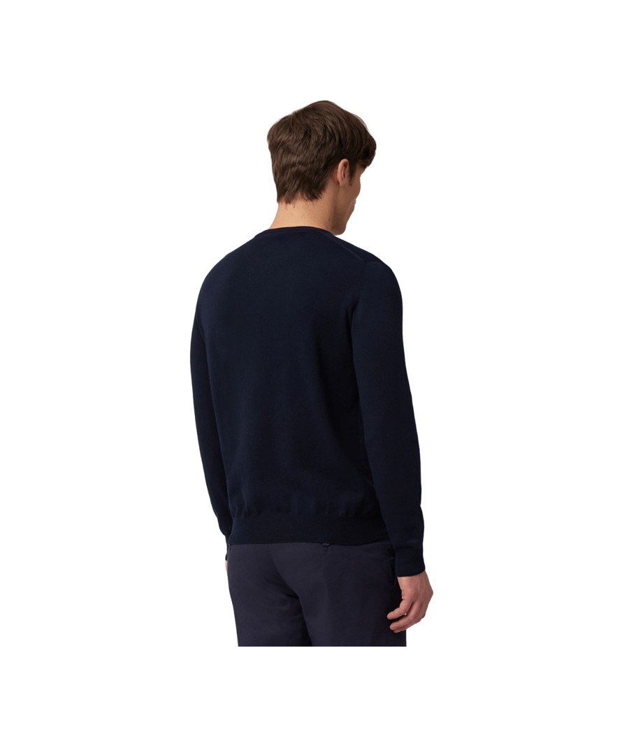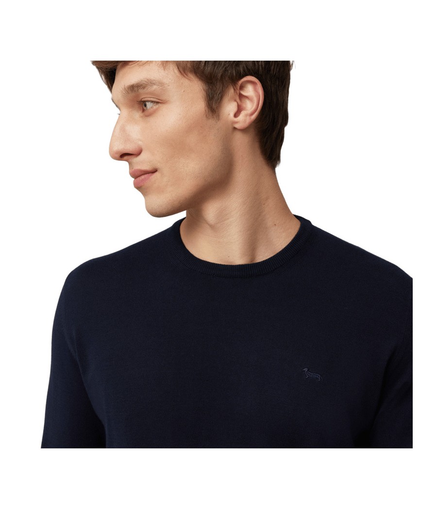 Maglione in puro cotone con girocollo e orli e polsini a coste. Questo modello ha una vestibilità regular per un look casual.con Bassotto ricamato a contrasto sul lato cuore.