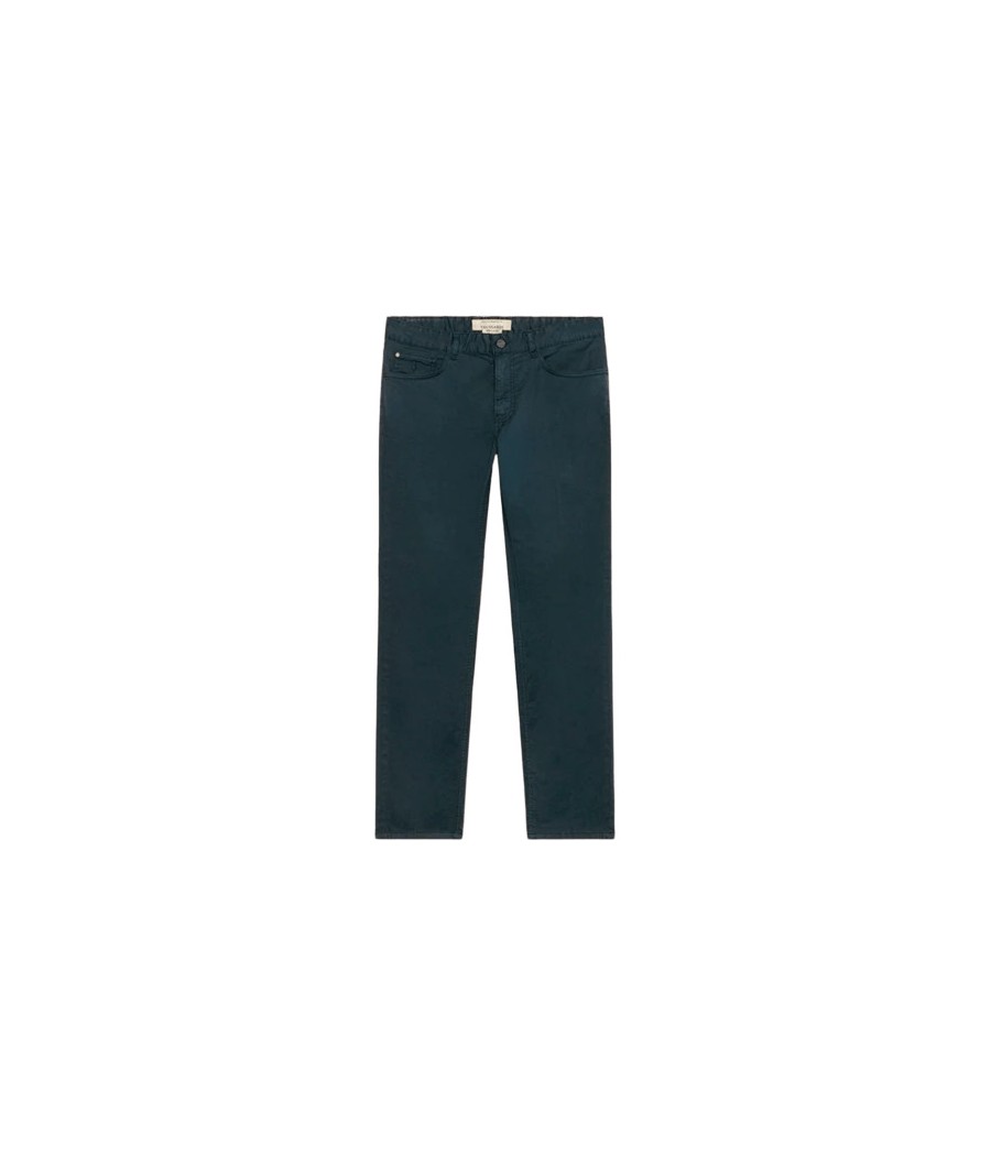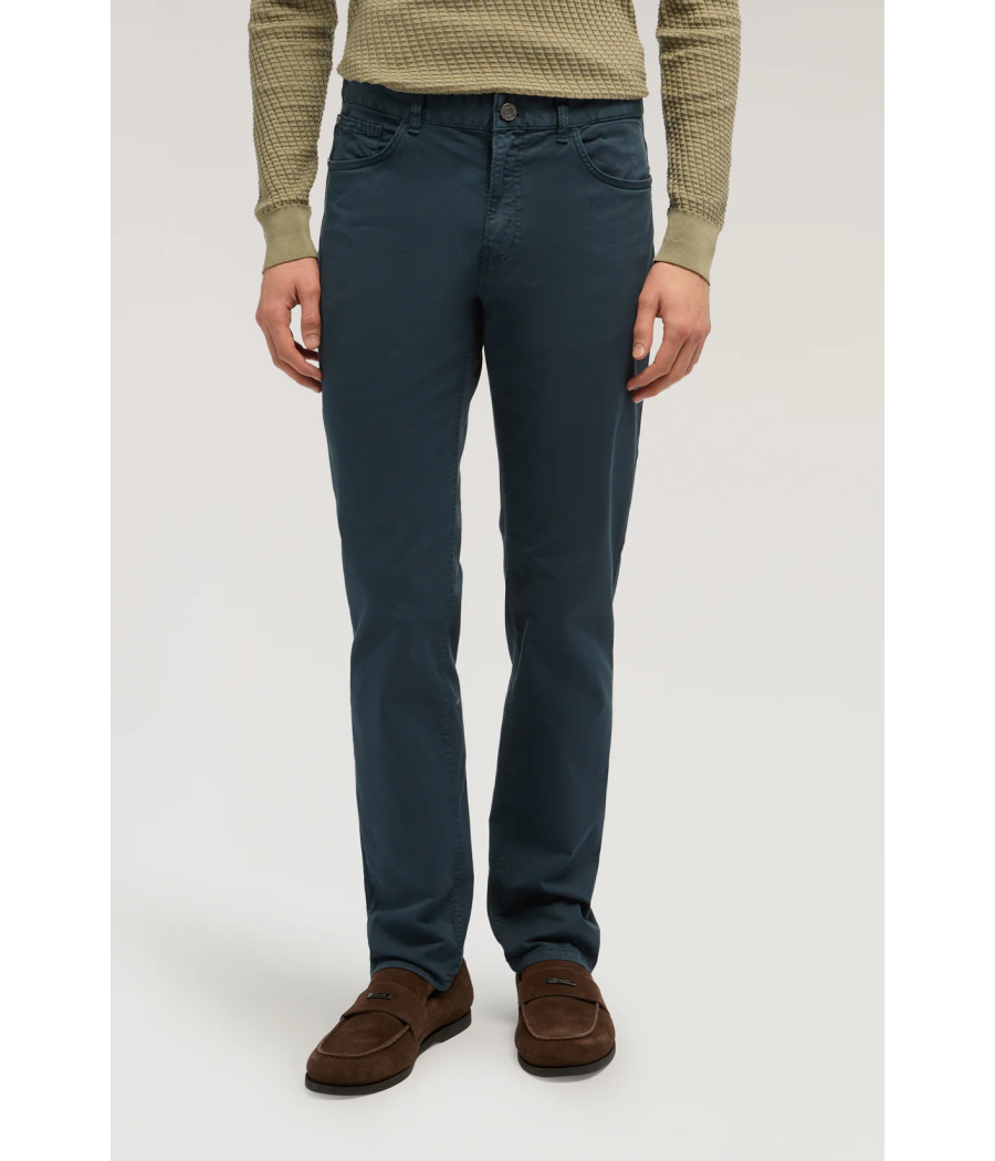 Il 370 Slim Fit presenta un equilibrio perfetto tra comfort ed eleganza. Realizzato in gabardina leggera di alta qualità per garantire comfort tutto il giorno. La vestibilità slim rimane avvolgente sulla coscia e morbida sulla gamba, perfetta per un look versatile dal mattino alla sera. Dettagli come la salpa in pelle, il quinto taschino ricamato e rivetti e bottoni personalizzati completano il design contemporaneo. Ideale per outfit smart casual che richiedono stile e funzionalità. Modello in gabardina leggera con salpa in pelle 3% Elastan per maggiore comfort Fodera interna in cotone 100% Vestibilità close fit