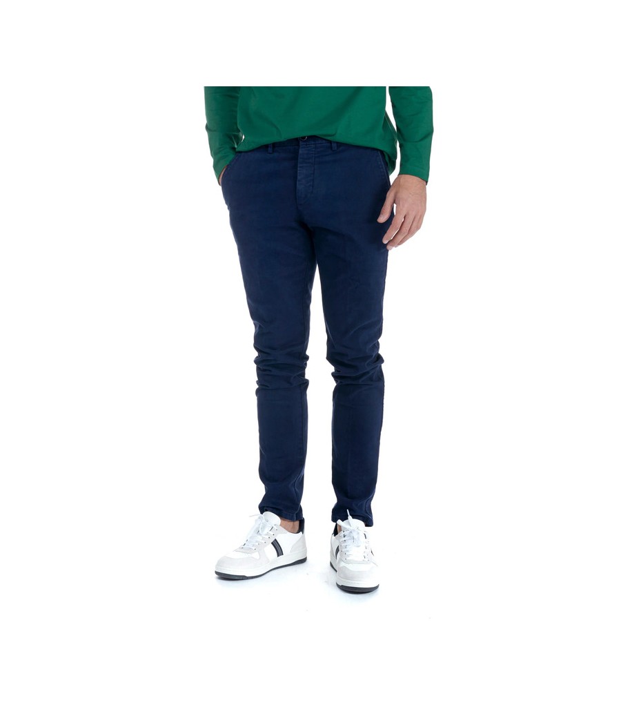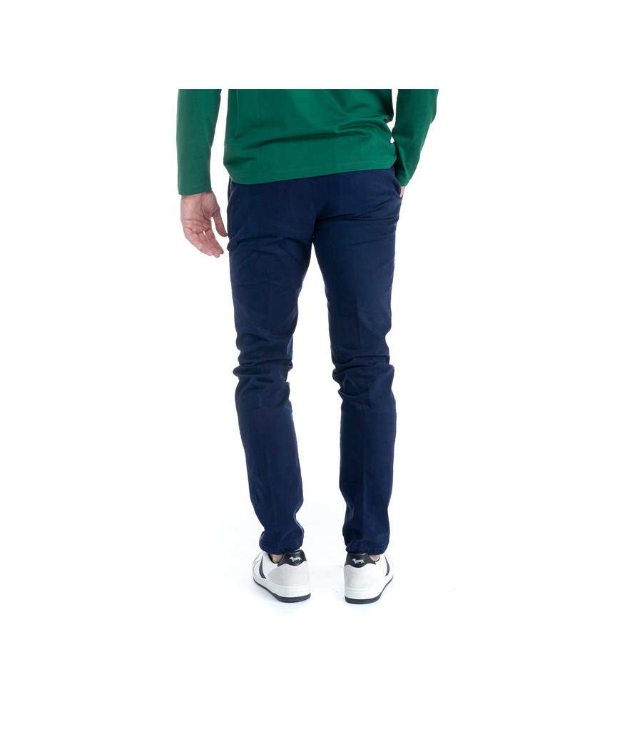 Pantalone modello chino in cotone elastico con tasche anteriori inclinate e tasche a filetto sul retro. Vestibilità narrow. Logo ricamato sulla tasca posteriore destra. TESSUTO 97% COTONE 3 % ELASTAN TAGLIE IN CENTIMETRI GIRO VITA - 44 =78CM - 46 =82CM - 48=86 CM - 50=90CM - 52=94 CM - 54 =98CM - 56 =102CM 58= 104 cm