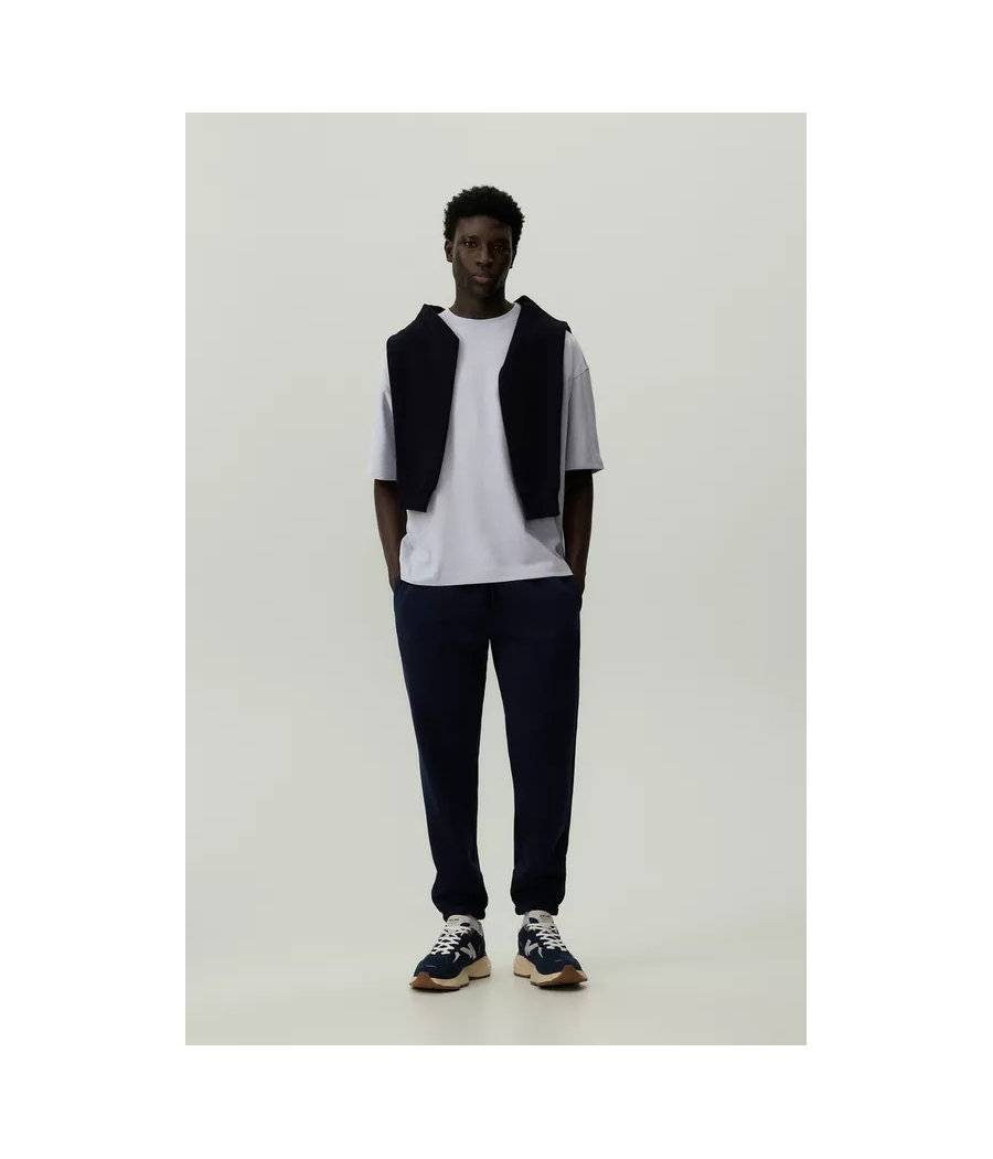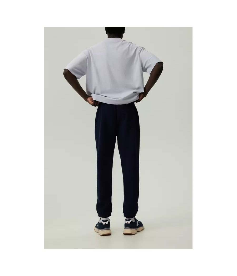 Pantaloni tuta basic dal taglio leggermente aderente, con vita elasticizzata regolabile con coulisse, tasche laterali e tasca posteriore. L'orlo è dotato di polsino elasticizzato. Il suo fit è slim e il tessuto interno è rifinito con una morbida spazzolatura.
