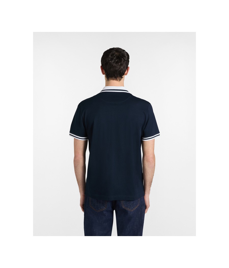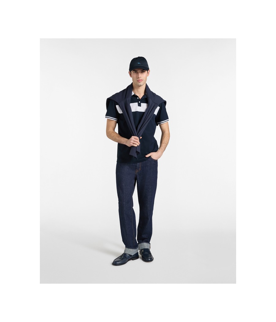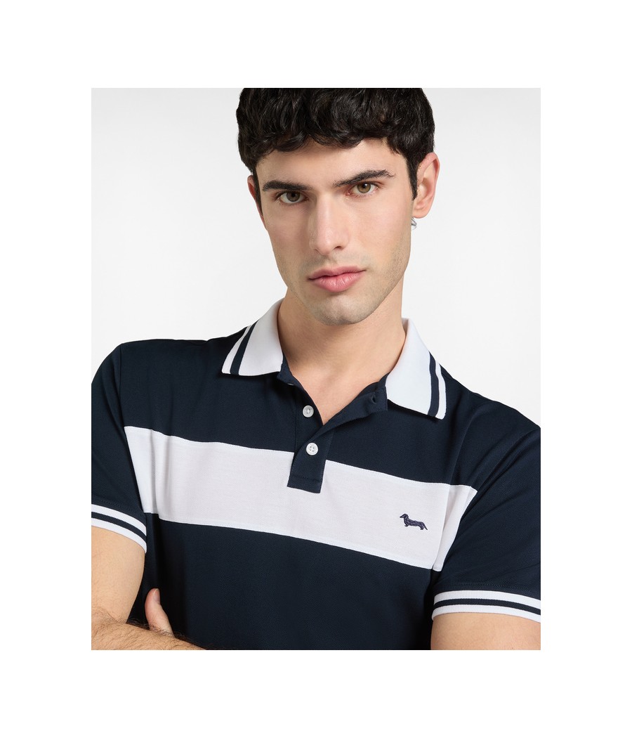 Polo uomo dalla vestibilità regular, caratterizzata da un design pulito e contemporaneo, valorizzato dalla fascia orizzontale a contrasto sul petto. Realizzata in piquet mercerizzato, offre una mano liscia e compatta, una resa cromatica brillante e un comfort elevato, mantenendo al tempo stesso struttura e durabilità nel tempo. Il modello è completato da collo e bordi manica rifiniti a righe, chiusura con bottoni e bassotto ricamato sul petto, firma discreta del brand.