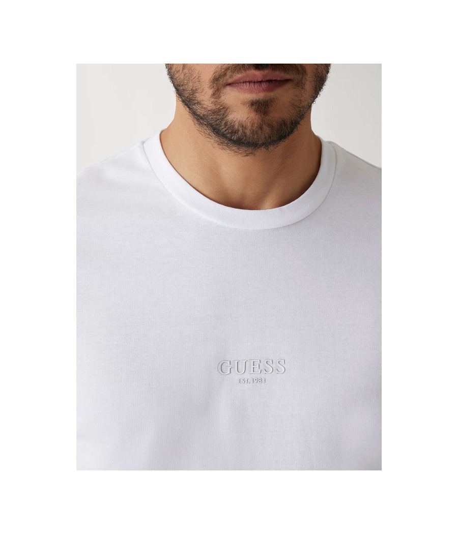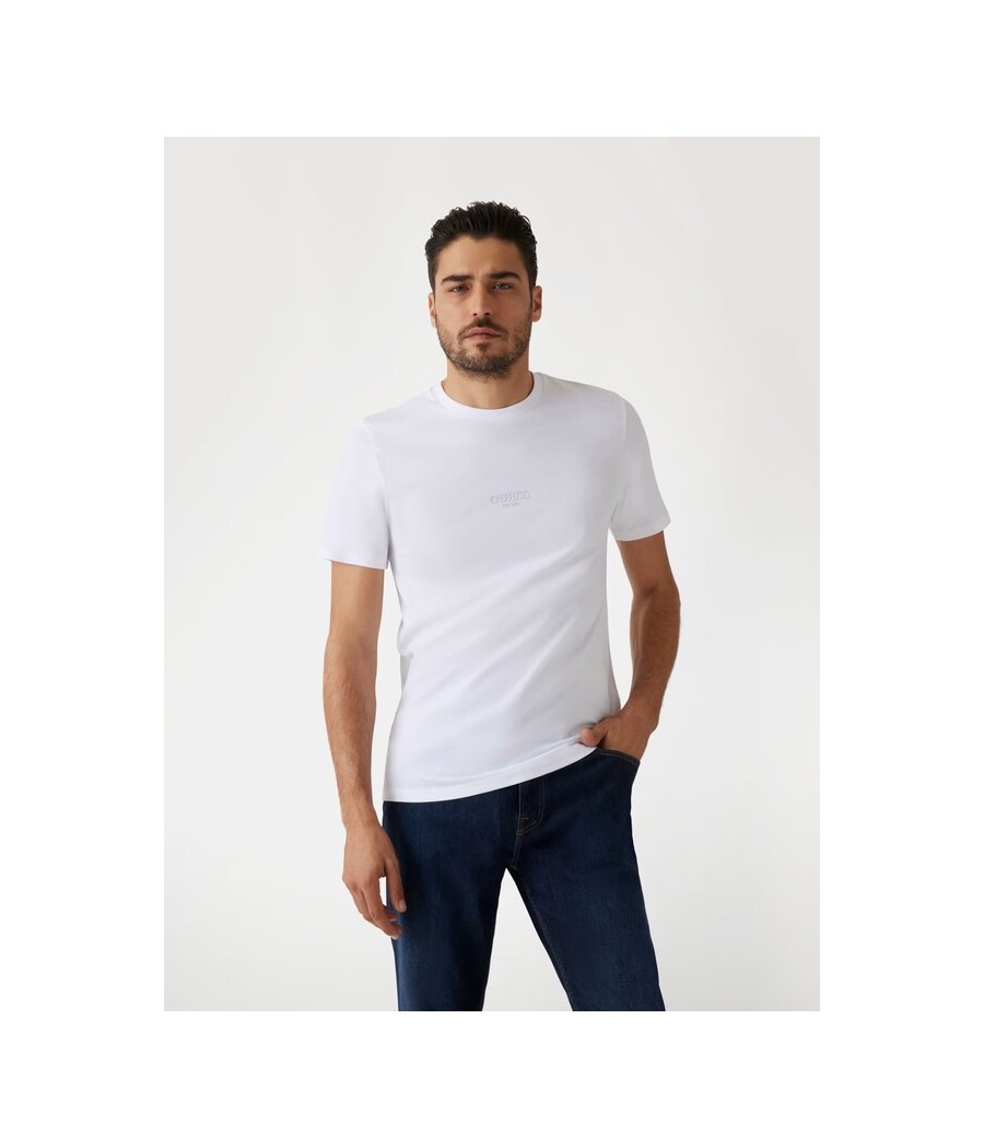 Scopri lo stile con la T-shirt in cotone. Un girocollo accentua la silhouette slim fit, mentre il tessuto in jersey assicura un comfort imbattibile. Un piccolo logo frontale dona un tocco di classe. Perfetta per un look casual nei weekend.