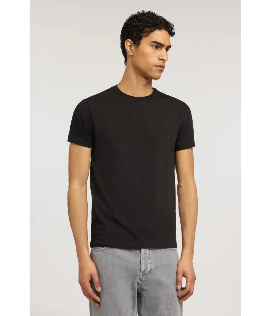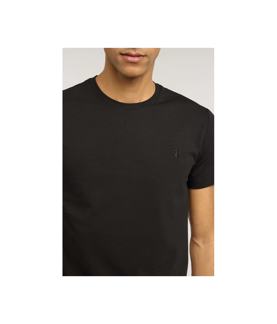 Hero del guardaroba Trussardi, la t-shirt in jersey di cotone si reinventa con il dettaglio del ricamo levriero sul punto cuore. Il fit slim valorizza la silhouette maschile senza rinunciare al comfort garantito dall'elastan. Un capo essenziale che si adatta perfettamente al daily look, ideale sotto una giacca per un outfit smart casual o abbinato a jeans per un look più rilassato. La versatilità del jersey elasticizzato la rende perfetta per ogni momento della giornata.