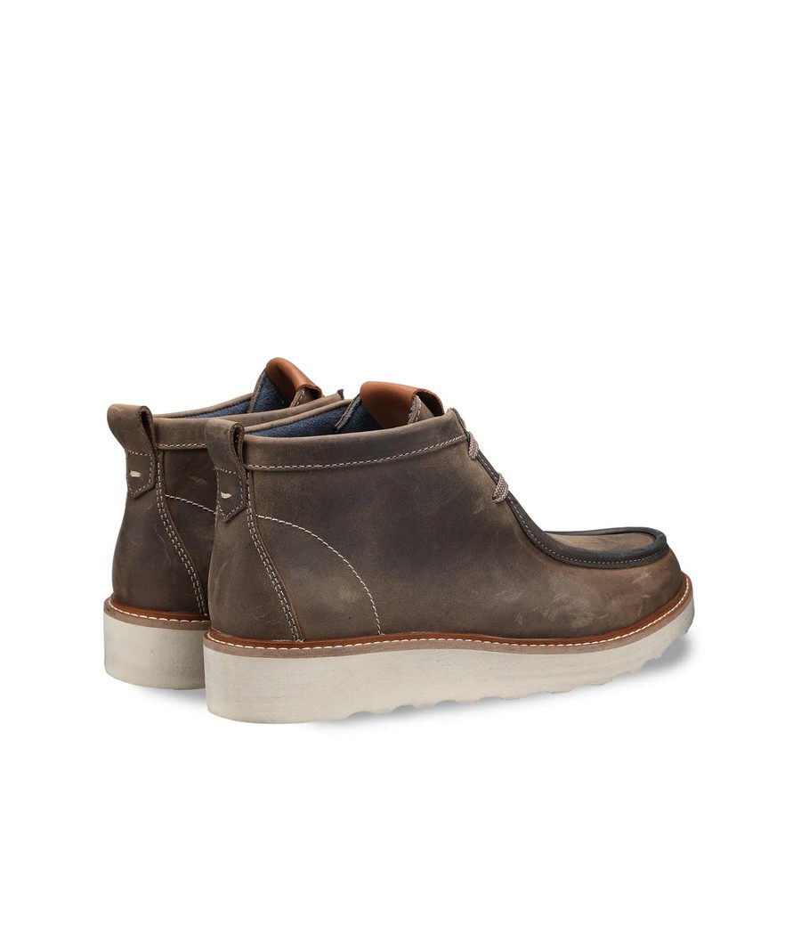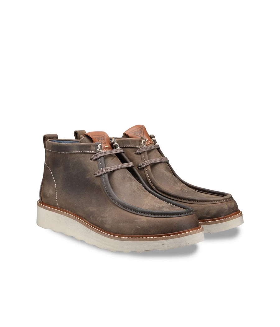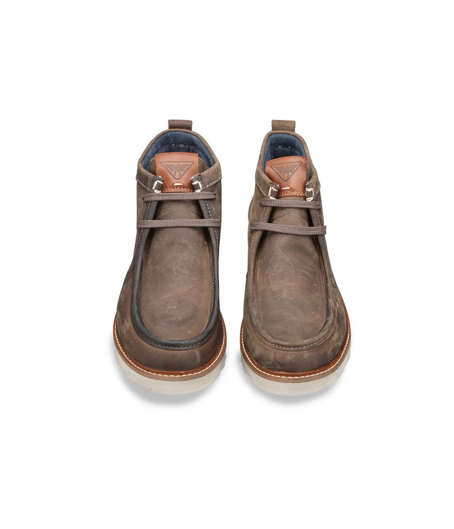 Scarponcino stringato della linea Oakland con tomaia in stile mocassino realizzato in pelle, arricchito da un pull up posteriore per facilitare la calzata e suola in gomma dentellata per una stabilità ottimale. Una scarpa confortevole che arricchirà il tuo look da montagna e città.